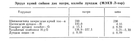 - Эрүүл хүний цусны сийвэн дэх натри, калийн дунджийг тогтоосон дээрх үзүүлэлтүүдийг өөрийн орны нөхцөлд физиологийн үзүүлэлт болгон хэрэглэж болох юм.