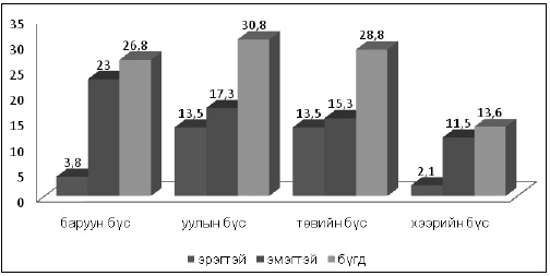 Зураг 1. Артерийн даралт ихэсэлтийн тархалт (бүс, хүйсээр)