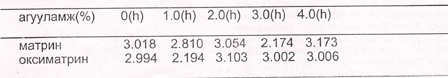 Зураг4. оксиматрины агууламж 1. үнэгэн сүүлхэй лидэр 2. Матрин 3. Оксиматрин