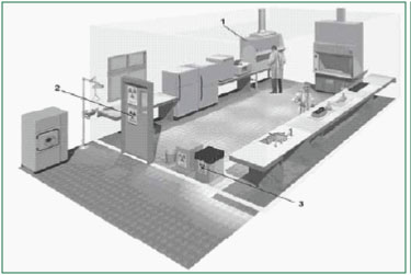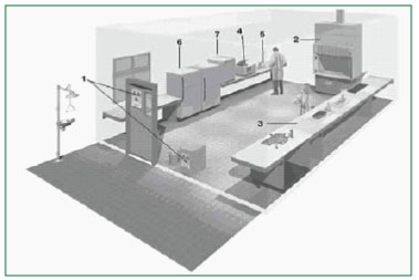 Тайлбар: а-Орчин, үйл ажиллагааны хувьд хүмүүсийн хөл хөдөлгөөнтэй газраас тусгаарласан байна; б-Гадагшлуулах агаар хаашаа гардагаас хамаарна.; В-Ямар бичилбиетэнтэй ажиллаж байгаагаас хамаарна; г-Цонх, хяналтын теледэлгэц буюу камер, хоёр талын утсан холбоо. (High Efficiency Particular Air) шүүлтүүр - агаарын биетийн өндөр үр дүнтэй шүүлтүүр.